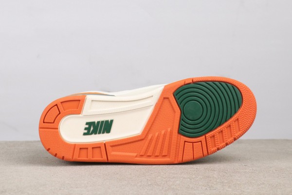 The design inspiration of this shoe is deeply rooted in the diverse and integrated urban culture of Miami, paying tribute to the local sports spirit and engraving the emotional memories of the immigrant group. The upper is based on delicate white荔枝纹 leather, with a transparent and neat texture, and is complemented by a matte green suede layer that outlines the shoe frame, simulating the tropical vegetation greenery of Miami's streets. The eye-catching orange leather patch at the heel precisely echoes the iconic color scheme of the Miami University Hurricane team, integrating the passionate genes of campus sports into the shoe design, and instantly evoking a sense of local sentiment.