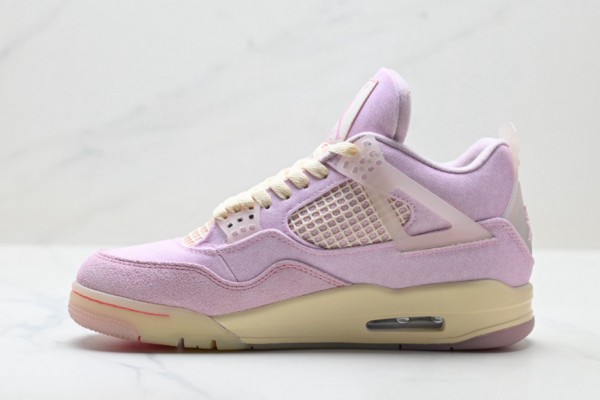 This shoe is based on the classic mid-top contour of Air Jordan 4, retaining the iconic heel curve and layering of the shoe body. The upper is made of high-quality leather: pink leather covers the heel, both sides of the shoe body and the heel, with a delicate texture like silk soaked in dusk, bringing a gentle and high-end feeling; white leather covers the middle and lower part of the shoe body and the heel, with pure white and pink forming a sharp contrast. The Swoosh logo on the side is presented in a smooth arc, retaining the classic genes while injecting a touch of vitality into the whole. The "TEX Iced Carmine"字样 on the heel is embossed on the pink leather, highlighting the unique identity of the shoe.