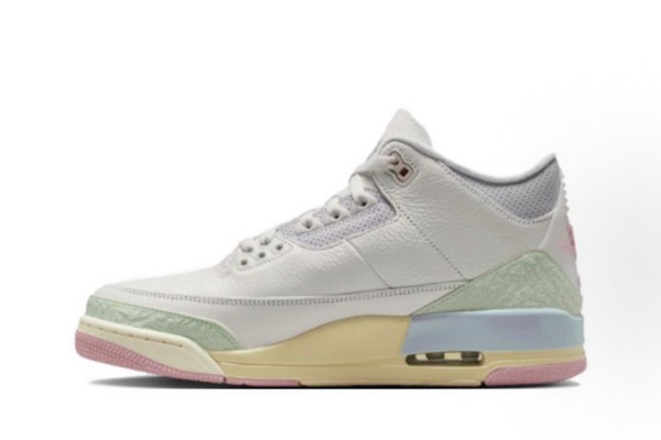 The Air Jordan 3 Retro OG White Pink Green Iris is a new spring themed masterpiece in the AJ3 series. It is based on pure beige and blends gentle macarons of soft fog powder and mint green, perfectly blending retro basketball genes with fresh spring aesthetics. It is a trendy shoe that combines collection value and versatility.