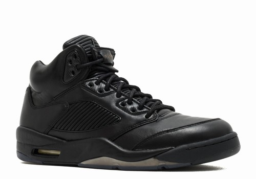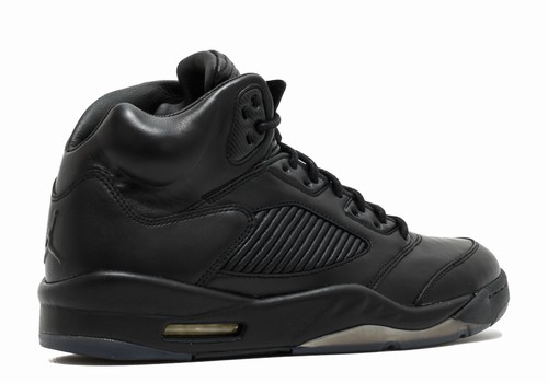 This Premium Air Jordan 5 comes in a all Black theme. Looking closer, they feature premium leather use across the uppers while a ribbing lands on the panels and tongue. In addition we have Carbon Fiber used on the eyelets, leather on the liner and a new Flight tongue tag. Completing the look is a smokey translucent outsole.