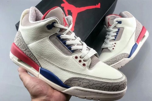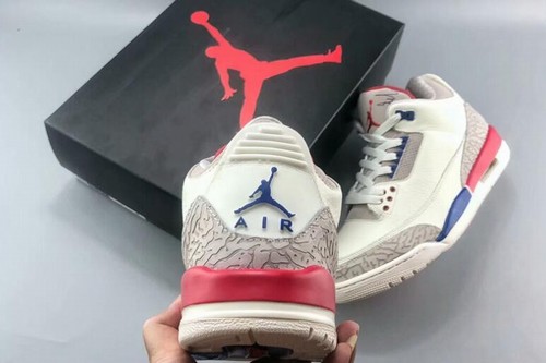 The American color Air Jordan 3 "International Flight" is a white shoe with a gray crack and a red and blue. In addition to the classic crack element and the vibrant blue-red look, the focus is also on the left shoe tongue on the MJ signature!