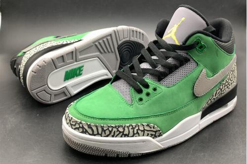 The Air Jordan III(3) Tinker PE has a heel and an insole that are different from the traditional design. The oversized “O” character shows the PE identity. Black and yellow two-tone "can be changed" Swoosh Logo, golden yellow jumpman at the tongue and classic Oregon style in green