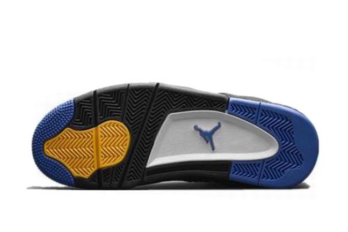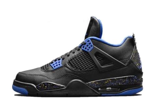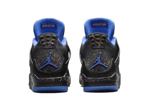 The Air Jordan 4 Retro Wings Black Blue is black with a touch of lychee to create the upper. The lace buckle, lining, outsole and logo are decorated with blue accents, and the midsole and heel are also designed with yellow and blue splashes.