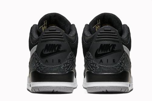 Air Jordan III (3) Tinker Black Cement is also exquisite in detail design. The embroidery on the inside of the shoe body is also one of the retro design elements. The new gold embellishment adds to the luxurious temperament. Silver gray 3M reflective tongue, combined with reflective Swoosh, further enhance the attractiveness of these shoes. Tinker Hatfield's signature on the inside of the insole and tongue highlights the legendary origin of the design.