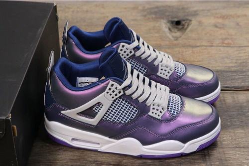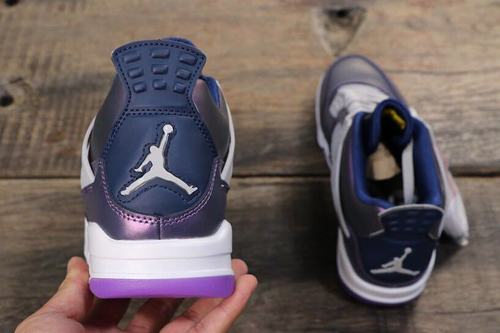 The new color matching Monsoon Blue The biggest feature of this pair of Air Jordan 4 is that the upper body has a chameleon effect, and the black upper shows a red and green gloss. The Air Jordan 4 SE GS upper is embellished with light gray, cheap jordans and with a white midsole, the overall shape is still quite fresh, and it is also very attractive with an ice-blue translucent outsole.