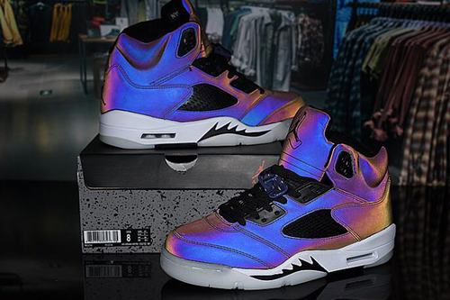 The air jordan 5 has a mesh leather upper on the side and an air unit in the forefoot flex grooves for the first time to increase its flexibility. The heel still uses the same air sole air cushion! 3M reflective material added to the tongue! Make the tongue look more dazzling at any angle! The transparent plastic buckle on the tongue makes air jordan 5 more outstanding and perfect!