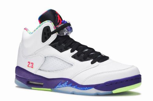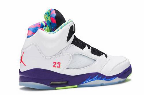 Air Jordan 5 Alternate Bel-Air still retains the iconic "23" at the heel, with colors similar to the style of the 90s. The whole body of the shoe follows the 2010 version of the Mandarin Duck design. The whole body of the shoe is mainly white with a cool purple midsole and a colorful outsole. The lining design is also very colorful, and the 23rd bamboo on the side of the cheap jordan shoes body, the Jumpman logo on the tongue, the heel embroidery, the lining, the 23 embroidery and the flaming design are all mandarin duck designs.