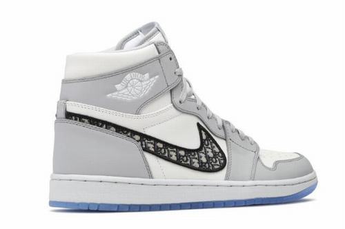 This pair of air jordan 1 high og silhouettes, made in Italy in premium manufacturing and made from exquisite calfskin, represent the characteristics of Maison leather, with its edges painted and gray on, a color that has been synonymous with Maison since its creation in 1947. The Jumpman wings logo is on the upper and the Swoosh is made of opaque jacquard fabric, a single pattern representing both industry leaders. The same pattern is scaled down and laser etched into the insole at 50%.
