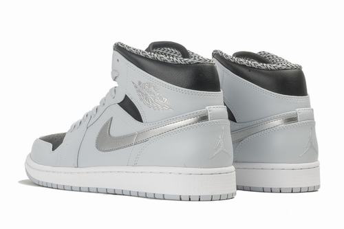 Retro Air Jordan 1 Mid Grey Silver Black Women
