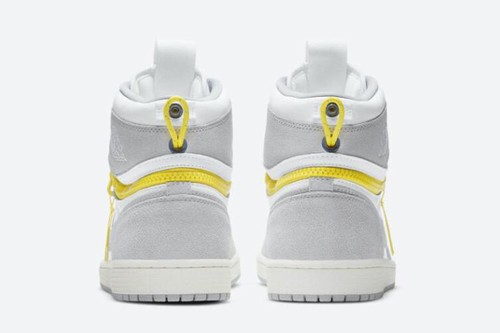 The Air Jordan 1 sneaker is based on a very classic black toe silhouette.Most of the shoes are made of Smoke Grey with yellow toe, Swoosh, etc. Smoke Grey's middle soles echo the white outsole, while the biggest change comes from the heels. The upper area and the heels are embellished with a contrasting fluorescent yellow to give the classic understated black toe a fresh look.