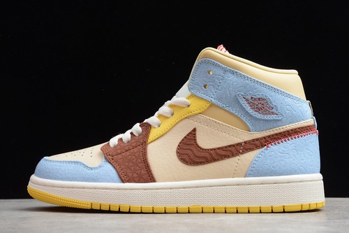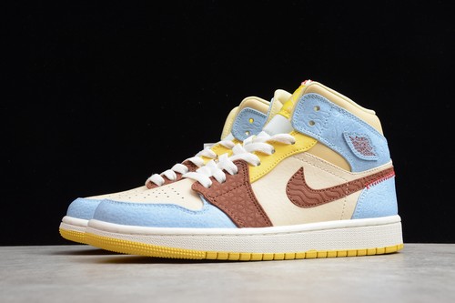 Air Jordan 1 High Mid Fearless is equipped with hand-stitched details to highlight the roots of its founder. It comes in cream, brown, yellow and light blue tones, with red stitching on the heel and tongue. The upper and forefoot surround cheap jordans leather are printed with dark lines, rich in African national style, although many colors are used, but the visual effect of color matching is still very comfortable.