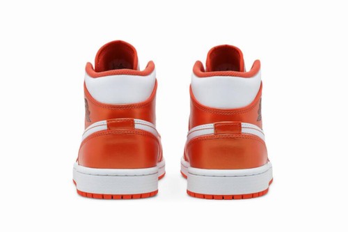 The new Air Jordan 1 Mid SE Electro Orange uses an electronic orange, white and black color scheme. This mid-top Air Jordan 1 has a white leather sole and an orange overlay made of metal-like materials. Orange continues to appear on the stitched Swooshes, insoles and rubber outsoles, with black wings and Jumpman logos on the outer ankles and tongue, respectively.