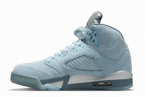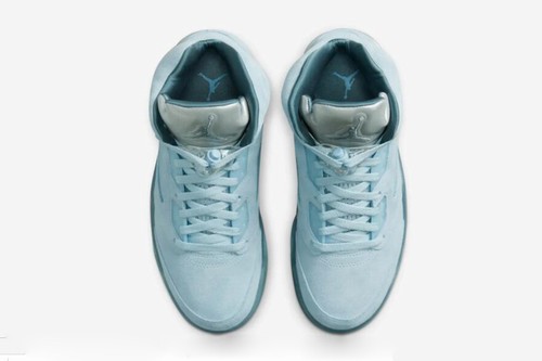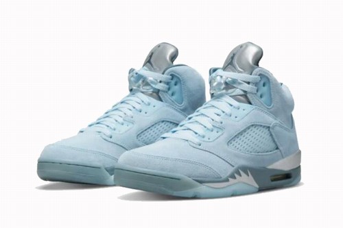 Inspired by the Blue Bird era, Jordan designers have cleverly applied a variety of blues to the Air Jordan 5 Retro. The Air Jordan 5 Retro Bluebird comes in a full-length "ice blue" color scheme with a signature shark tooth motif on the midsole and metallic silver on the heel for a refreshing, versatile look.