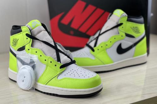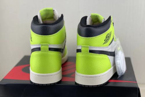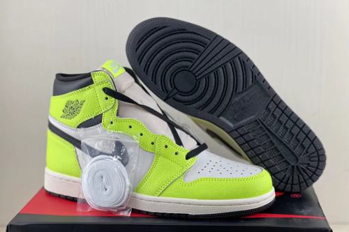 Air Jordan 1 Fluorescent green this color is not rare in the use of sneakers, but due to the difficulty of driving it leads to the polarization of the evaluation of this color, the Air Jordan 1 High OG Volt shoe body overall only black, white, fluorescent green three colors, The insole also uses the fluorescent green match color of coquettish gas, and the leather that upper material chooses to have special grain material, increased the texture of whole pair of shoes.