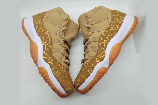 Jordan Brand once again brings a new shoe, the Air Jordan 11 Golden Silk Wheat. The main colors of the shoe are wheat and sail white. The body of the Air Jordan 11 Golden Silk Wheat is spliced with gold nylon webbing. The toe cap is presented with khaki suede and metal texture, full of bright texture. The patent leather of the Air Jordan 11 signboard is decorated with metallic crackles, The overall design of the air jordan shoes is completed by matching the wheat colored raw rubber outsole.
