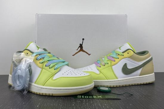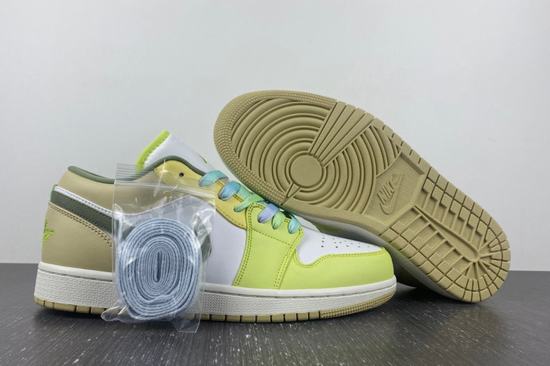 Air Jordan 1 Low Green White shoes with white, turquoise and light khaki main tones are very fresh and bright. The body of the shoe is made of leather, mesh and fur, presenting a rich layer. Green and yellow makeup points, cheap jordans for sale green embellishment, small fresh temperament. The upper is made of leather, mesh and fur to create a great visual effect. Finally, a white center sole is paired with a light khaki outsole to complete the overall design.
