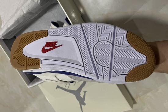 SB x Air Jordan 4 Sapphire adopts Air Jordan 4 as the overall design blueprint. The shoe body is covered with a large area of white. Meanwhile, the material is mainly leather, supplemented with off-white suede material wrapping. Shoelace buckle, heel and bottom of the shoe compared to the previous cheap jordans released effect picture, the overall blue is light, more fresh and simple. Finally, the raw rubber outsole is matched to highlight the function of skateboard co-branded shoes. The raw rubber material suitable for skateboarding has a very good grip. The retro flavor of the whole pair of shoes is quite strong, and the overall visual effect is more fresh and pleasant.