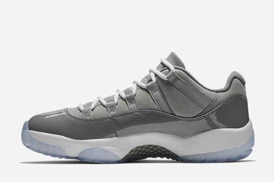 Air Jordan 11 "Cool Grey" Cool grey color as a high top Air Jordan 11 popular color, Low top version of the market naturally attracted attention, cool grey theme is not only refreshing, the foot is more versatile, but also after Easter Air Jordan 11 low, Another pair of shoes favored by sneaker players. This AJ11 Cool Grey still uses ice blue crystal outsole and grey leather upholstery all over,