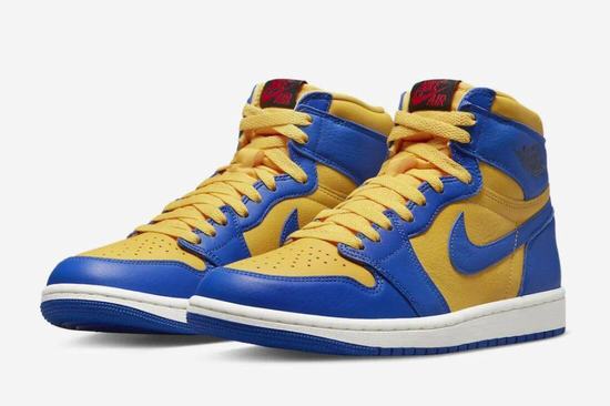 The new Air Jordan 1 High OG WMNS "Reverse Laney" will be available on February 17. The whole pair of shoes use the "Lanny" color scheme to reverse makeup points, full of retro temperament. A combination of blue and yellow patchwork leather body, with tongue details decorated in red.
