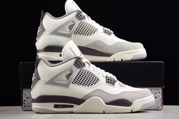 A Ma Maniere x Air Jordan 4 Phantom features a stylish color scheme that includes Phantom grey, metallic white, violet, light iron lime and Burgundy. The shoes are made of high-quality leather, mainly in phantom grey, and the toe is made of elegant grey suede. Violet color appears in the eye, heel buckle and part of the cheap jordans midsole, in addition, the shoe also prominently displays the Air and A Ma Maniere brand logo, adding a unique charm to the collaboration.