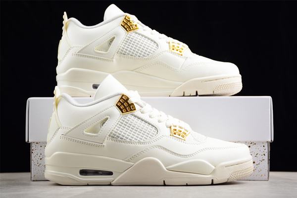 Air Jordan 4 Metallic Gold shoe with Sail metal gold and black combination, the upper with sail pattern, tongue logo with metallic gold embellished. Black and trailing Jumpman, located inside the Air unit and wing holes. The whole pair of shoes are covered with a large area of white leather, decorated with gold buttons, and the Flying Man cheap jordans for women Logo at the tongue of the shoe is presented in the form of embossing, ultra-high appearance level, and the pure white shoe body is decorated with gold plating, while taking into account gorgeous modeling and matching properties, the visual effect is very outstanding.