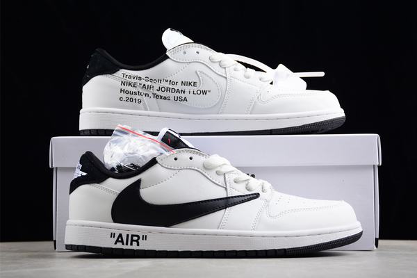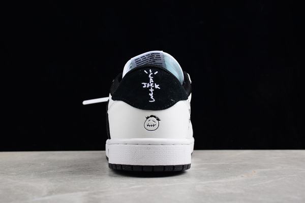 Travis Scott x Air Jordan 1 Low OG White Black uses the same backhook design and the same hue as the high top in the shoe body, but the color of the upper and Swoosh is switched, the black Swoosh hook is combined with the white upper. The contrasting color design makes people more eye-catching. The "Cactus Jack" brand name on the inside of the shoes, the face on the heel, and the Travis Scott name on the insole are all details that add to this shoe king of the year.