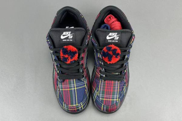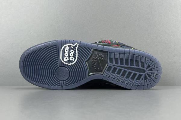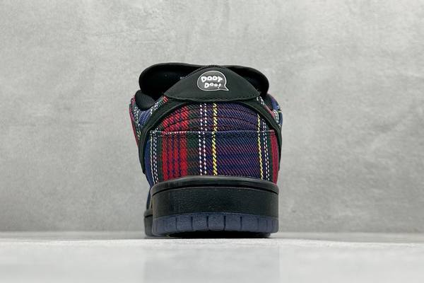 The black lacing system contrasts with the checkered upper, ensuring a comfortable fit while enhancing visual layering. The additional red laces provide more styling possibilities. The "DOOD" letter pattern on the outsole, with its playful design, highlights the unique collaborative identity and has become a collection highlight for skateboarding enthusiasts and trendsetters.