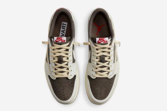 The TS X Air Jordan 1 Low OG Reverse Mocha features shoelaces, midsole and the signature Reverse hook on the outside in off-white to further accentuate the texture. The words of Cactus Jack brand on the inside, the face at the heel and the Logo embroidery of flying wings, highlight the joint identity together with the recognition of the full, and row face! Finally, a brown rubber outsole that echoes the color of the body completes the finish.