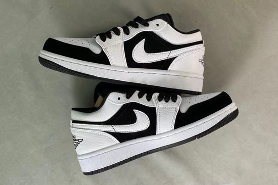 Air Jordan 1 Low Panda shoes with black and white as the main tone, the body of the shoes is mainly white smooth leather supplemented by black lychee leather, the material of the upper is lychee leather with suede, texture performance is very good, high-quality leather combined with light Air cushioned configuration, combined with classic low-top version, showing the summer style. Fresh interpretation of the current trend, create extraordinary comfortable daily wear experience.