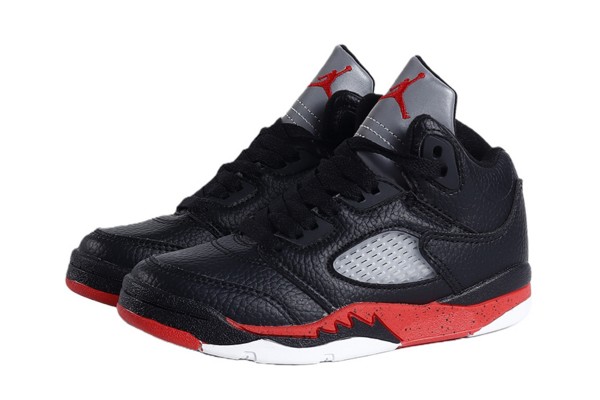 The Air Jordan 5 Retro Black Red Kids is a classic reissue shoe specifically designed for children in the AJ5 series. It features the iconic black and red color scheme, perfectly blending the basketball legend genes with the vitality of children. It has become a popular choice for children's daily wear and shoe collection.