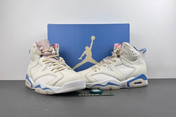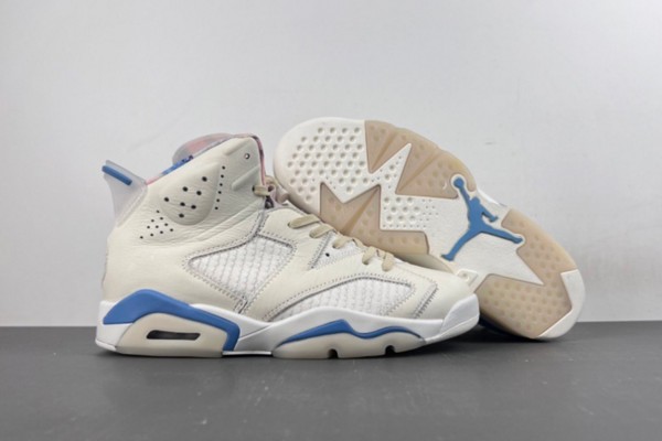The Air Jordan 6 Retro Sport Blue is a classic replica shoe from the AJ6 series with a strong retro feel. It is based on milky white beige gray and paired with a refreshing sport blue contrasting color, perfectly integrating the 90s basketball court genes with daily fashion aesthetics. It is a classic masterpiece that combines collection and versatility.